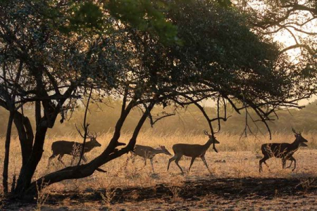 Sejumlah Rusa Timor (Cervus timorensis russa) mencari makan di Taman Nasional Baluran, Banyuwangi, Jawa Timur. Selain ramai dikunjungi wisatawan, Taman Nasional Baluran tersebut juga dimanfaatkan untuk penelitian, ilmu pengetahuan dan pendidikan. ANTARA FOTO/Budi Candra Setya